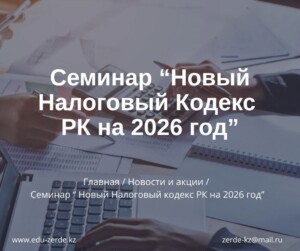 Учебный центр «Зерде» приглашает пройти семинар на тему «Новый Налоговый кодекс РК на 2026 год», «Изменения по ИПН и социальному налогу.СНР.», «Изменения по КПН и НДС».